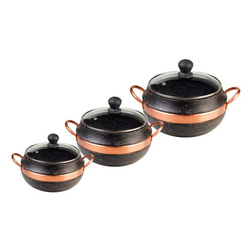 Conjunto de Panelas em Pedra Sabão Tampa de Vidro - 1,5; 3; 3,6 lts