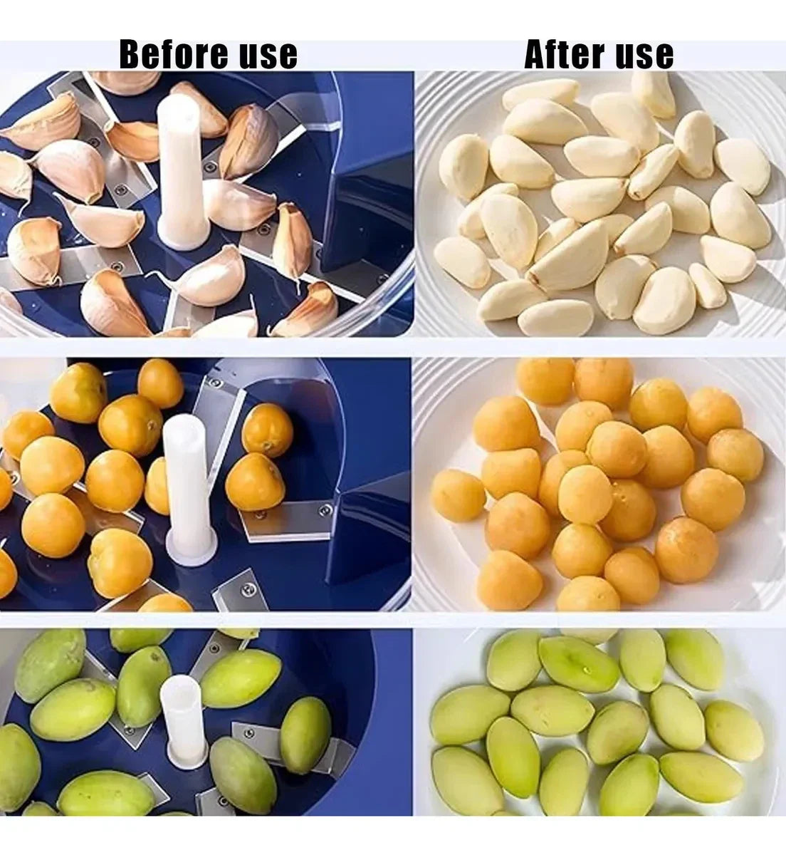 • Funcionamento automático: basta adicionar o alimento, ligar o aparelho e em segundos ele descasca automaticamente — prático e sem esforço.