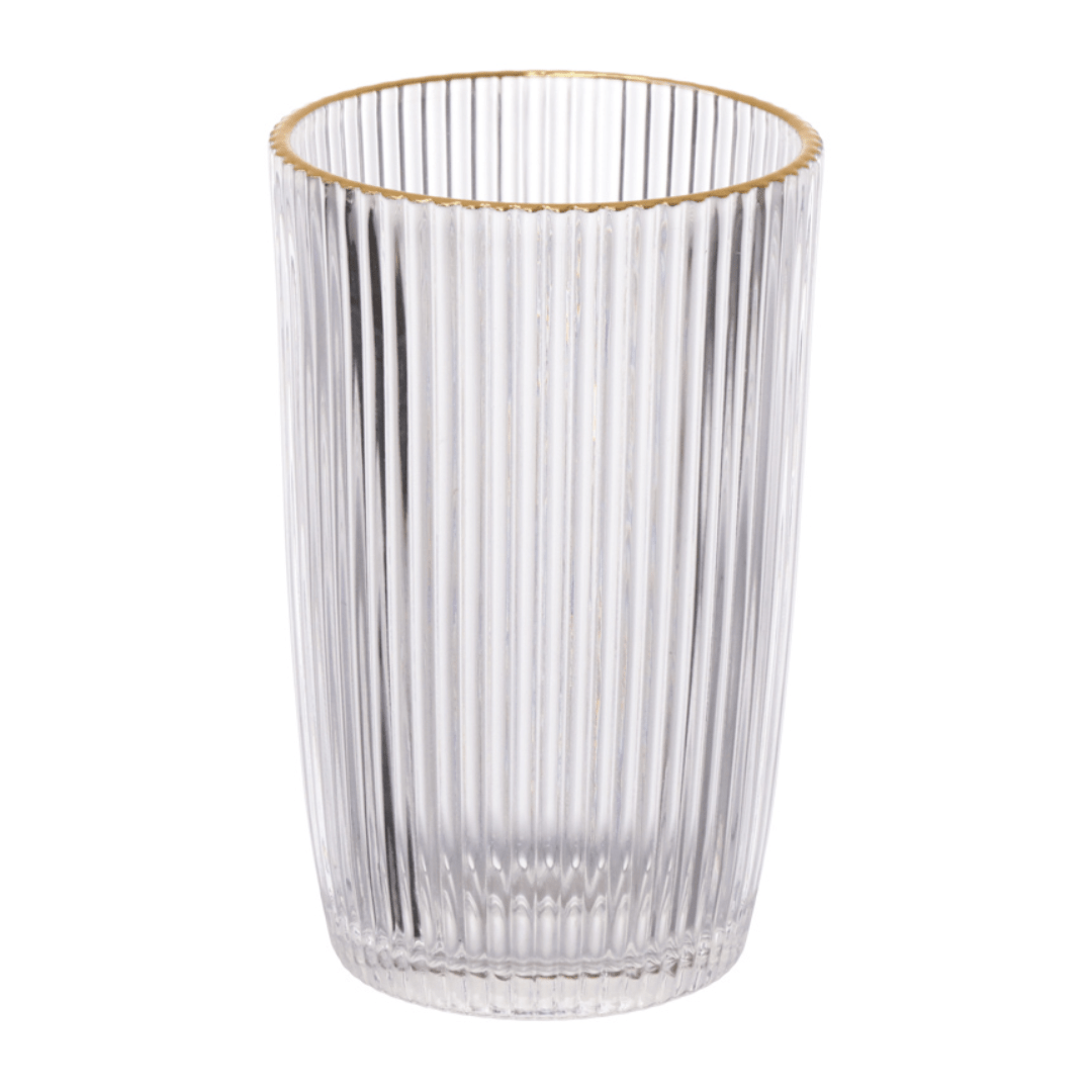 Este Jogo de 6 Copos Altos Graffiato traz sofisticação e elegância à sua mesa, eles são perfeitos para servir suas bebidas favoritas em grande estilo. Sua borda dourada adiciona um toque de luxo e glamour, tornando-os ideais para ocasiões especiais.