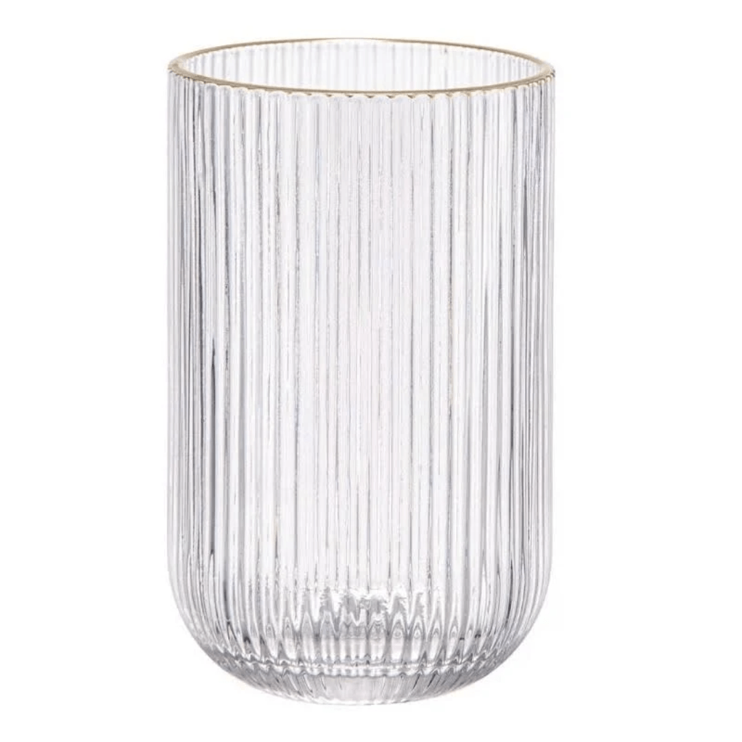 O Jogo 6 Copos Cameratta em Vidro com Borda Dourada de 425ml é a escolha perfeita para aqueles que desejam adicionar um toque de elegância e estilo à sua coleção de utensílios de mesa.