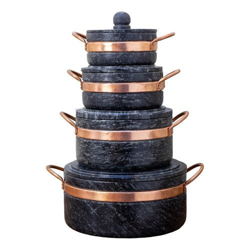 Descubra o segredo das gerações para cozinhar de forma saudável, eficiente e cheia de sabor. Nosso exclusivo Jogo de Panelas de Pedra Sabão é meticulosamente esculpido à mão por artesãos locais, combinando tradição milenar com design moderno. Cada peça é única, feita para realçar os sabores naturais dos seus alimentos e garantir uma experiência culinária sem igual.