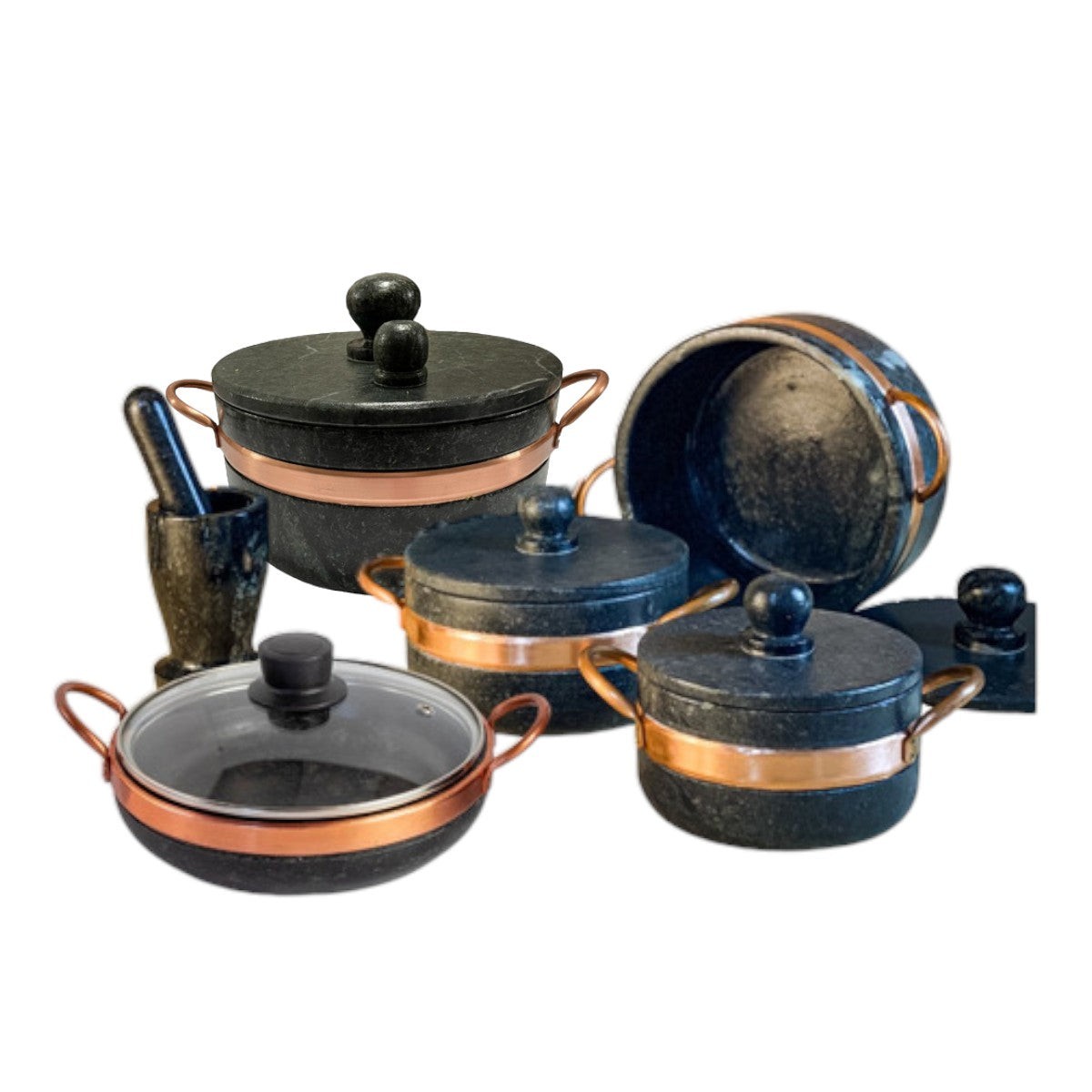 Jogo de Panelas de Pedra Sabão 6 peças com Panela de Pressão