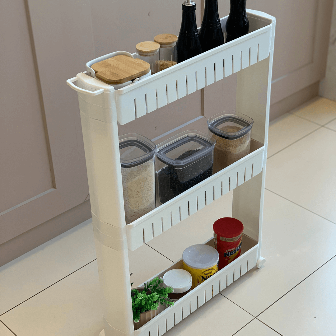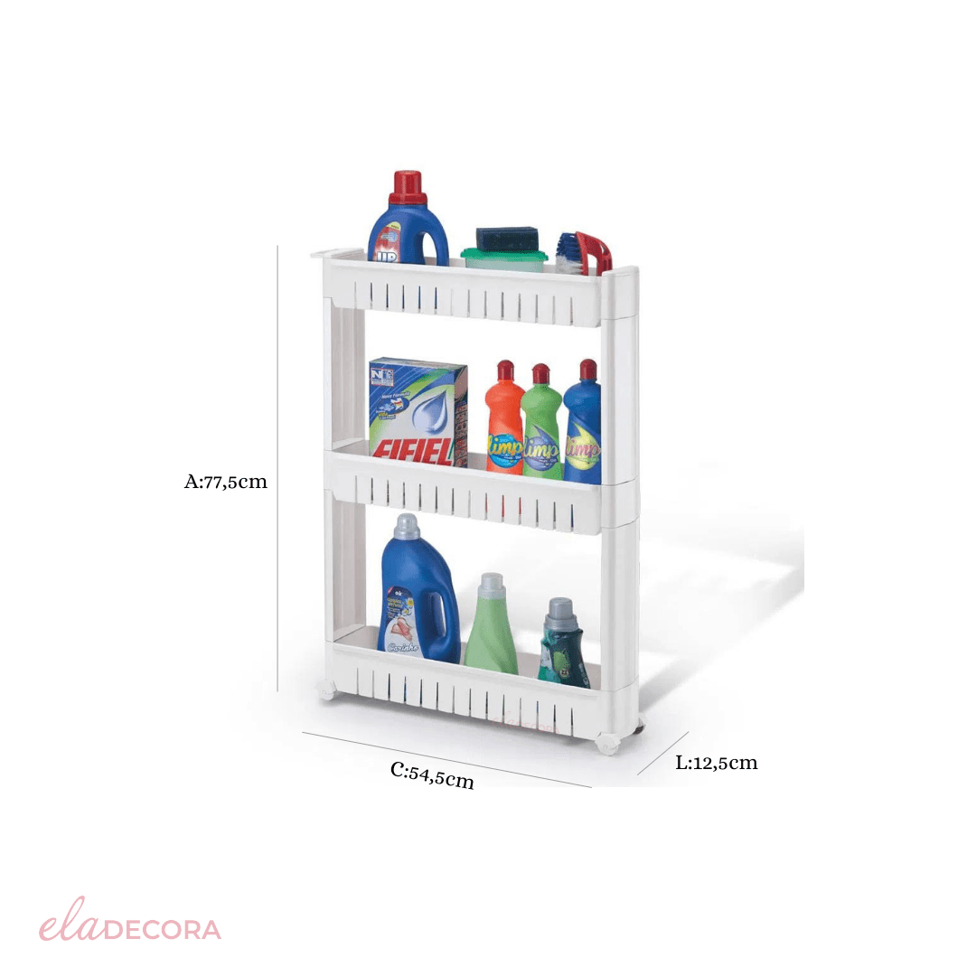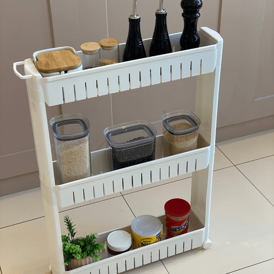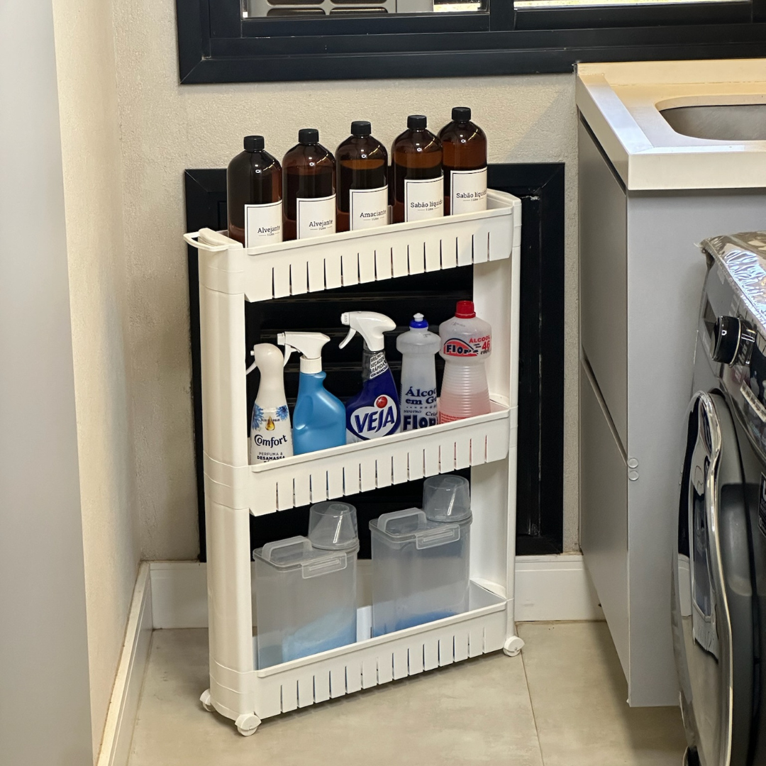 A Prateleira de Carrinho Organizador Multiuso com Rodinhas Brancas é a solução perfeita para quem busca economizar espaço e manter a organização de forma prática e estilosa.