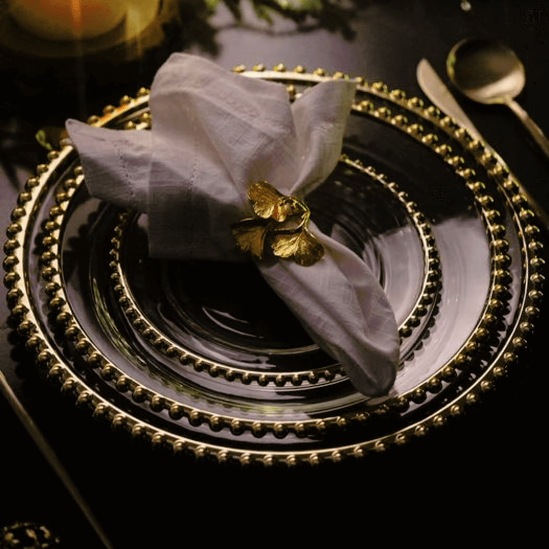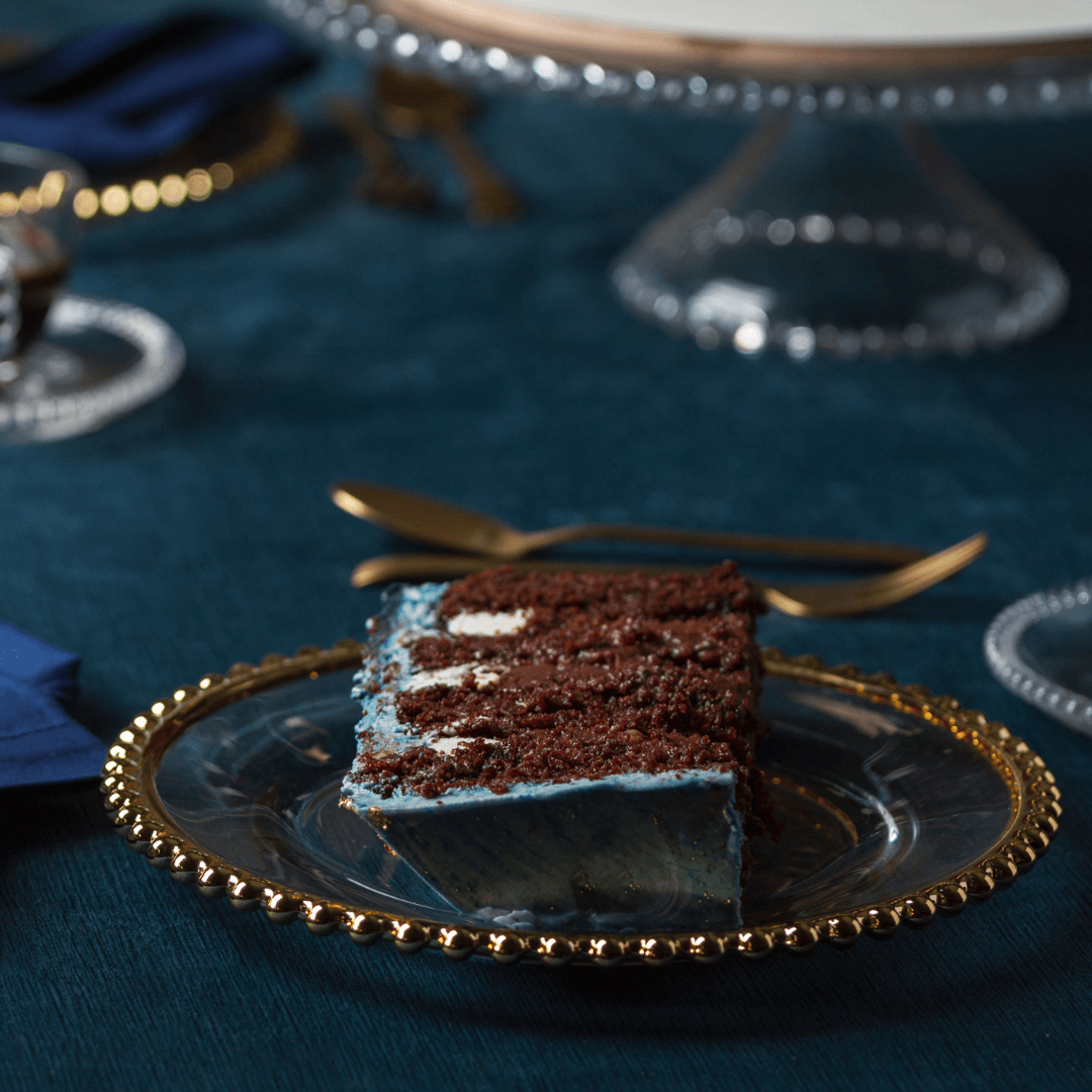 O Prato Sobremesa Cristal com Borda Bolinha Dourada Pérola de 20 cm oferece o equilíbrio perfeito entre funcionalidade e elegância. Use-o para servir sobremesas elegantes, como mousses, sorvetes, tortas ou saladas frescas.